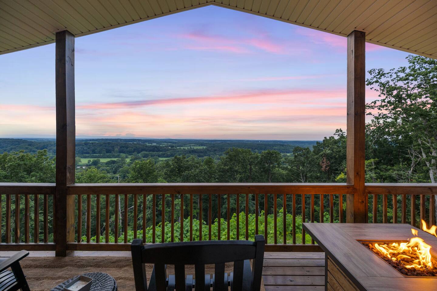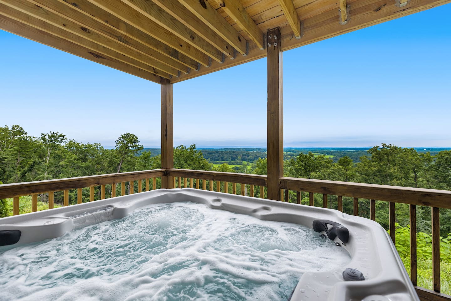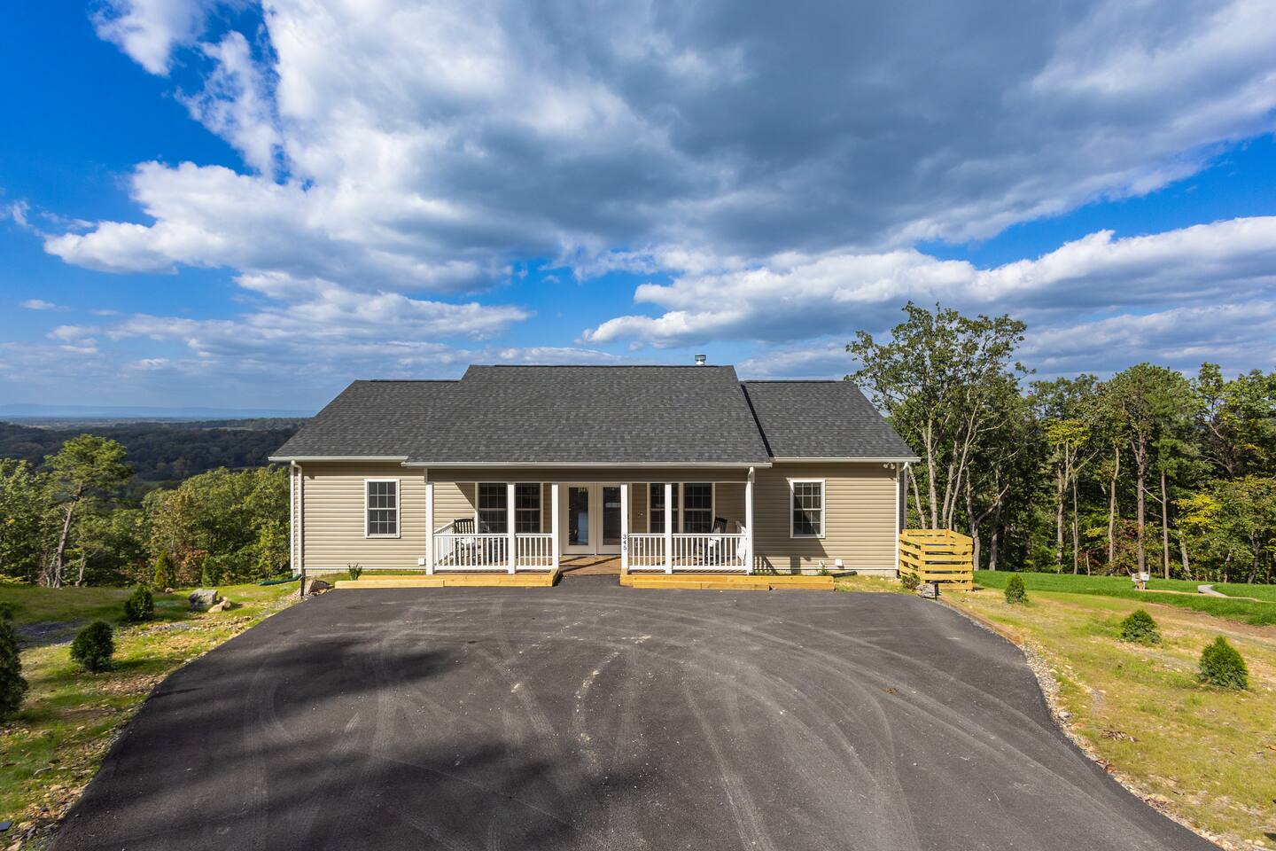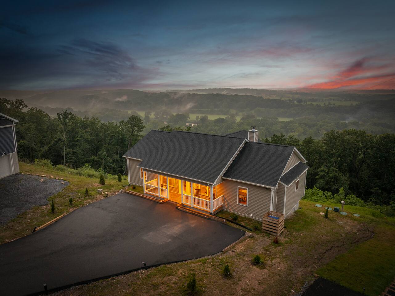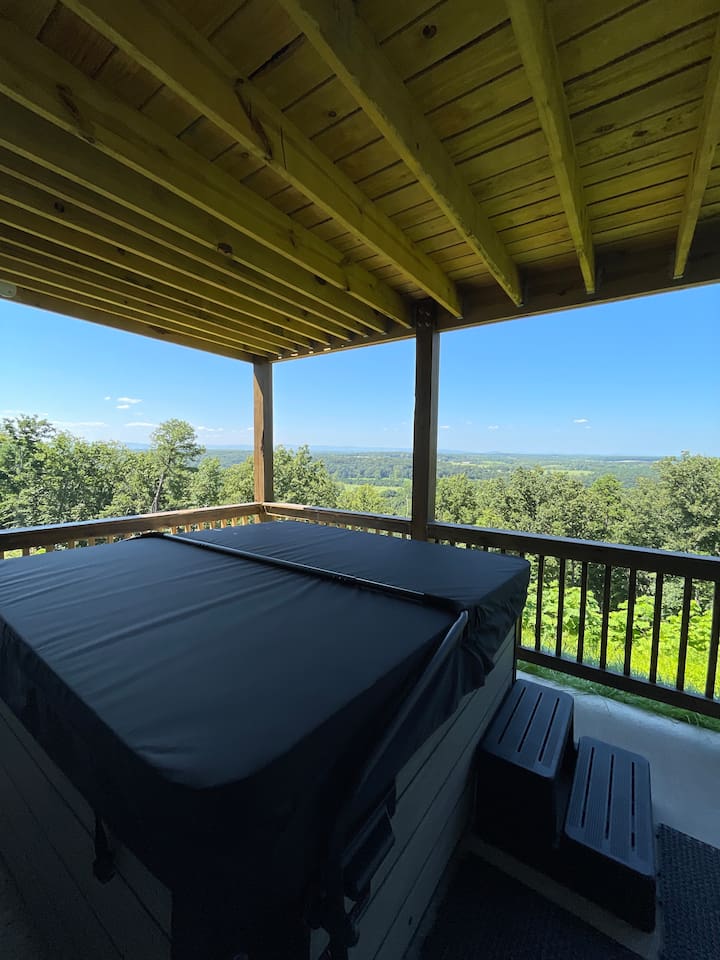 Welcome to The Vue in Front Royal, Virginia, a mountainside retreat designed for unforgettable stays above the Shenandoah Valley. Perched high on the mountain overlooking the Shenandoah River, this private getaway offers breathtaking panoramic views, peaceful surroundings, and the perfect setting for relaxation, adventure, and time spent with family or friends. Whether you’re planning a quiet weekend escape, a group getaway, or an extended stay to explore the valley, The Vue offers comfort, scenery, and privacy in one of the most beautiful areas of Virginia. Reaching the home is part of the experience. A winding dirt road climbs gradually through the forest, creating a sense of leaving the busy world behind as you approach the property. When you arrive, the reward is immediate. The home sits high above the valley with sweeping views of the Shenandoah River and the rolling mountains beyond. From sunrise lighting the ridge lines to golden sunsets across the valley floor, the scenery provides an ever-changing backdrop that makes every moment here feel special. The home is designed to make relaxing and gathering easy. Large windows bring the outside in, filling the living areas with natural light and framing the stunning mountain views. Open, comfortable living spaces provide plenty of room for guests to unwind, share meals, and spend time together after a day exploring the region. Whether you’re enjoying morning coffee while watching mist rise from the river or ending the evening with quiet conversation as the sun sets behind the mountains, the setting encourages you to slow down and enjoy the moment. Accessibility and convenience were carefully considered in the layout of the home. The front entry is wheelchair accessible, allowing guests to enter comfortably without steps. Three of the four bedrooms are located on the main floor, making it easier for guests who prefer to avoid stairs while still providing plenty of space and privacy for everyone in the group. The thoughtful design allows guests of all ages and mobility levels to feel comfortable and at ease throughout their stay. Step outside and the experience becomes even more memorable. A private hot tub offers the perfect place to relax while taking in the incredible views of the valley and surrounding mountains. After a day hiking, kayaking, or exploring local wineries, there is nothing better than soaking in the warm water while the sun sets over the Shenandoah landscape. At night, the mountain air becomes quiet and still, and the stars above the valley create a peaceful and unforgettable atmosphere. While the home feels secluded and tucked away in the mountains, the town of Front Royal is only a short drive away. Guests can easily visit local restaurants, shops, grocery stores, and cafes while still returning to the privacy and tranquility of the mountain retreat at the end of the day. This unique balance of seclusion and convenience is one of the things that makes The Vue such a special place to stay. Front Royal is known as the northern gateway to Shenandoah National Park and Skyline Drive, making it a perfect destination for outdoor adventures. Guests can spend their days hiking scenic trails, kayaking or tubing on the Shenandoah River, visiting nearby vineyards and breweries, or taking one of the most beautiful scenic drives in the country. Every season brings its own charm, from vibrant fall foliage to peaceful winter mountain views. Whether you are here for outdoor adventure, quiet relaxation, or time spent reconnecting with friends and family, The Vue provides a setting that makes every stay feel memorable. With incredible views, comfortable living spaces, wheelchair-accessible entry, three main-level bedrooms, and a private hot tub overlooking the valley, this mountain retreat offers an unforgettable Shenandoah Valley experience for every guest who arrives.