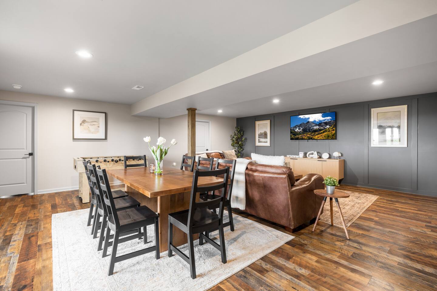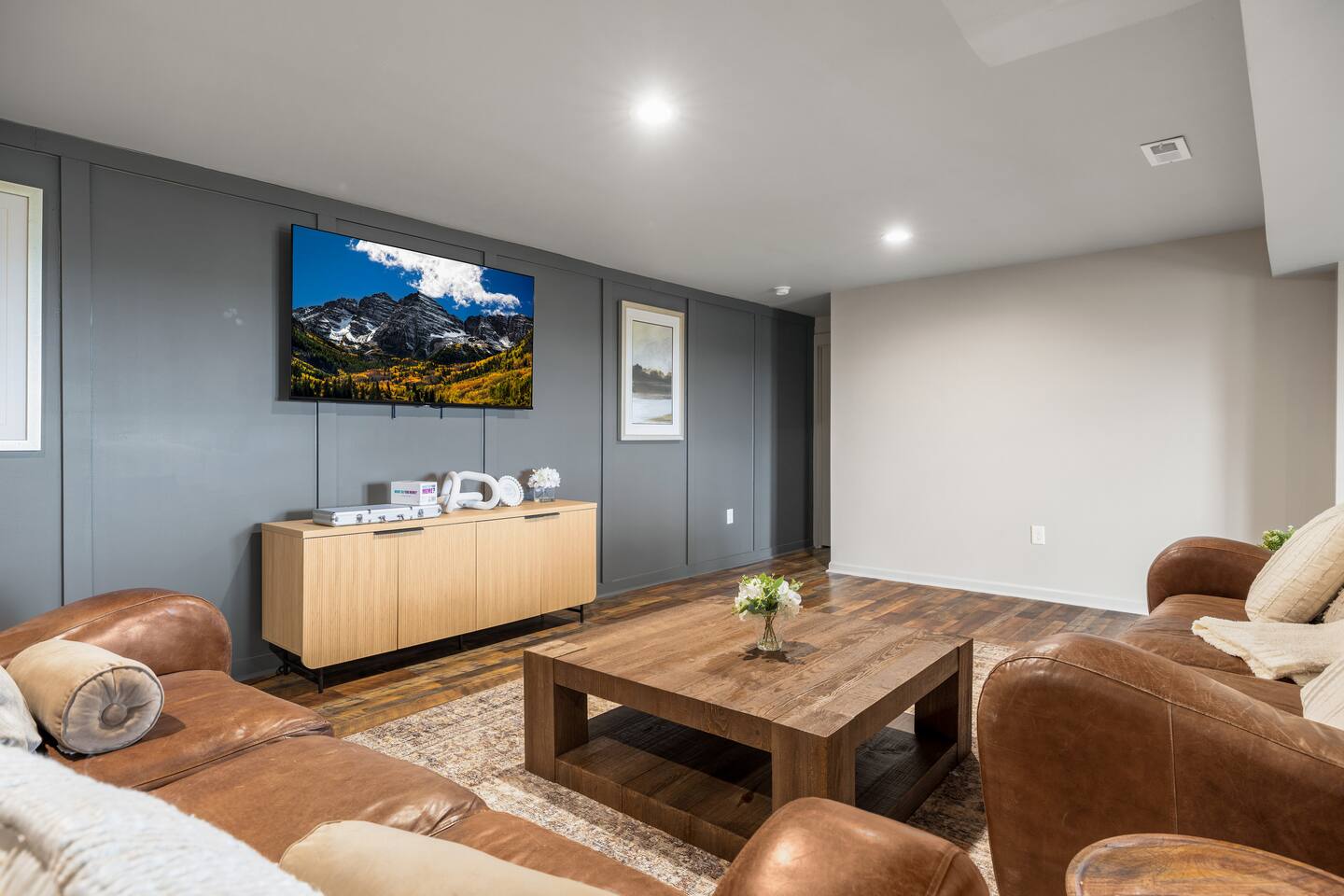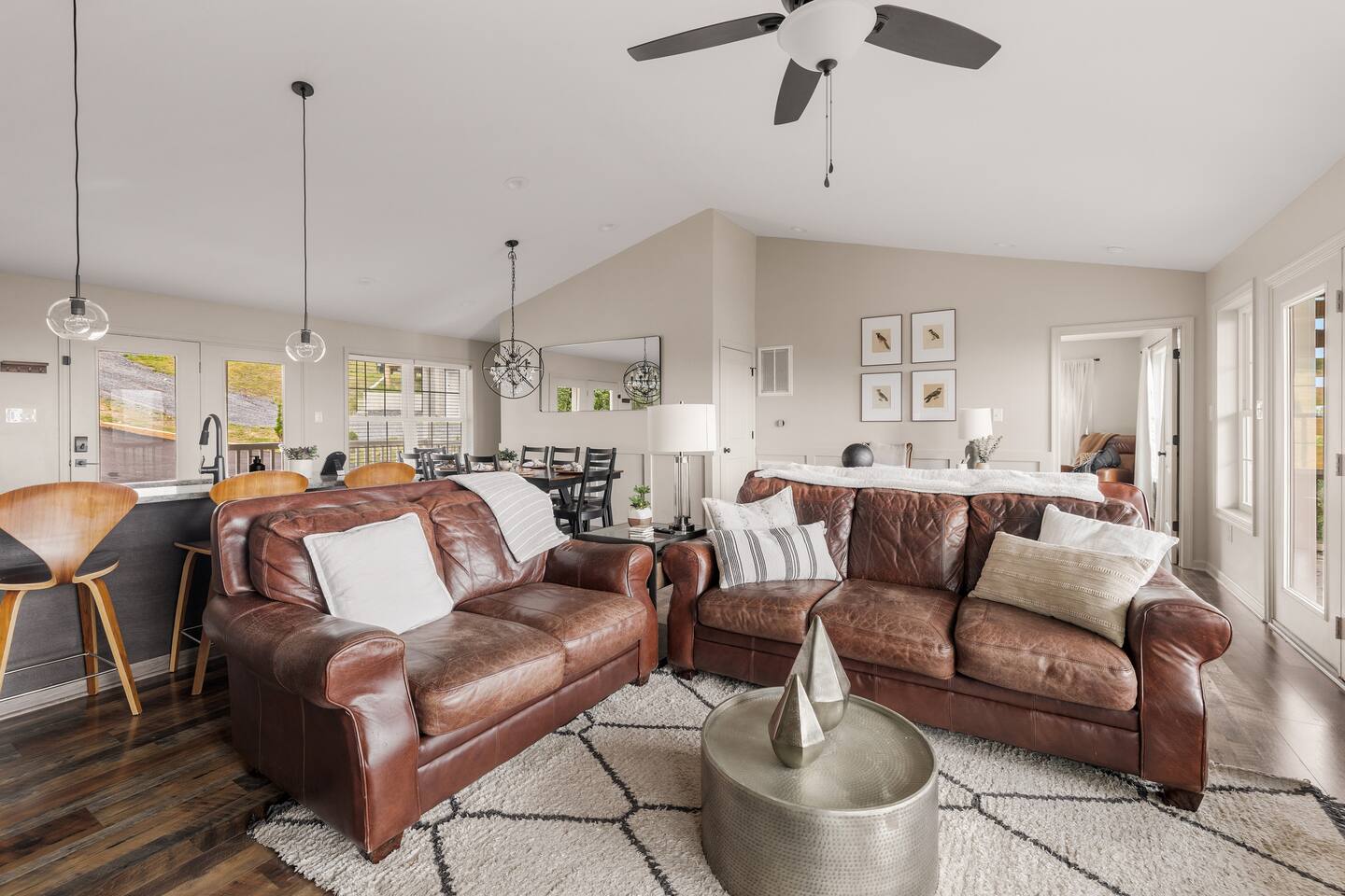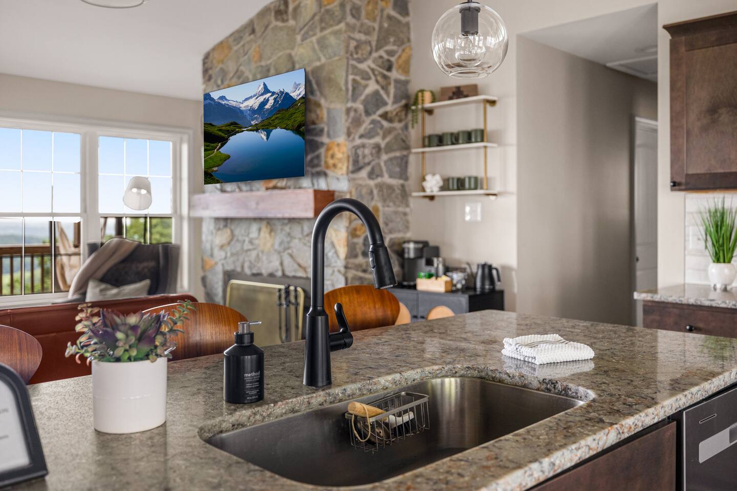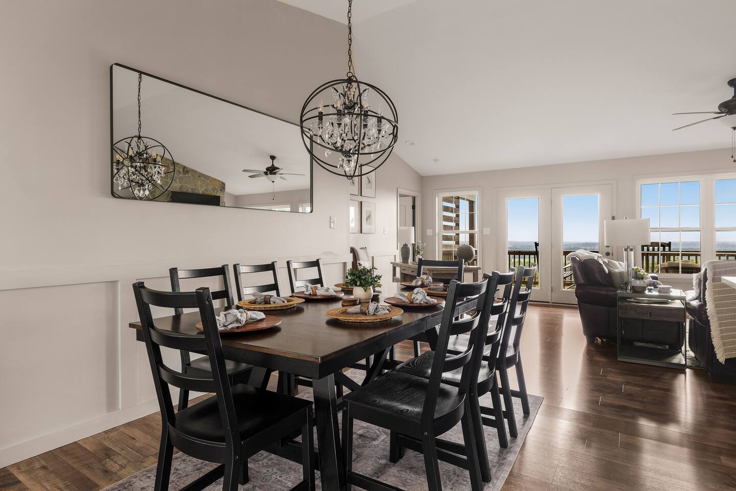 Welcome to The Vue in Front Royal, Virginia, a mountainside retreat designed for unforgettable stays above the Shenandoah Valley. Perched high on the mountain overlooking the Shenandoah River, this private getaway offers breathtaking panoramic views, peaceful surroundings, and the perfect setting for relaxation, adventure, and time spent with family or friends. Whether you’re planning a quiet weekend escape, a group getaway, or an extended stay to explore the valley, The Vue offers comfort, scenery, and privacy in one of the most beautiful areas of Virginia. Reaching the home is part of the experience. A winding dirt road climbs gradually through the forest, creating a sense of leaving the busy world behind as you approach the property. When you arrive, the reward is immediate. The home sits high above the valley with sweeping views of the Shenandoah River and the rolling mountains beyond. From sunrise lighting the ridge lines to golden sunsets across the valley floor, the scenery provides an ever-changing backdrop that makes every moment here feel special. The home is designed to make relaxing and gathering easy. Large windows bring the outside in, filling the living areas with natural light and framing the stunning mountain views. Open, comfortable living spaces provide plenty of room for guests to unwind, share meals, and spend time together after a day exploring the region. Whether you’re enjoying morning coffee while watching mist rise from the river or ending the evening with quiet conversation as the sun sets behind the mountains, the setting encourages you to slow down and enjoy the moment. Accessibility and convenience were carefully considered in the layout of the home. The front entry is wheelchair accessible, allowing guests to enter comfortably without steps. Three of the four bedrooms are located on the main floor, making it easier for guests who prefer to avoid stairs while still providing plenty of space and privacy for everyone in the group. The thoughtful design allows guests of all ages and mobility levels to feel comfortable and at ease throughout their stay. Step outside and the experience becomes even more memorable. A private hot tub offers the perfect place to relax while taking in the incredible views of the valley and surrounding mountains. After a day hiking, kayaking, or exploring local wineries, there is nothing better than soaking in the warm water while the sun sets over the Shenandoah landscape. At night, the mountain air becomes quiet and still, and the stars above the valley create a peaceful and unforgettable atmosphere. While the home feels secluded and tucked away in the mountains, the town of Front Royal is only a short drive away. Guests can easily visit local restaurants, shops, grocery stores, and cafes while still returning to the privacy and tranquility of the mountain retreat at the end of the day. This unique balance of seclusion and convenience is one of the things that makes The Vue such a special place to stay. Front Royal is known as the northern gateway to Shenandoah National Park and Skyline Drive, making it a perfect destination for outdoor adventures. Guests can spend their days hiking scenic trails, kayaking or tubing on the Shenandoah River, visiting nearby vineyards and breweries, or taking one of the most beautiful scenic drives in the country. Every season brings its own charm, from vibrant fall foliage to peaceful winter mountain views. Whether you are here for outdoor adventure, quiet relaxation, or time spent reconnecting with friends and family, The Vue provides a setting that makes every stay feel memorable. With incredible views, comfortable living spaces, wheelchair-accessible entry, three main-level bedrooms, and a private hot tub overlooking the valley, this mountain retreat offers an unforgettable Shenandoah Valley experience for every guest who arrives.
